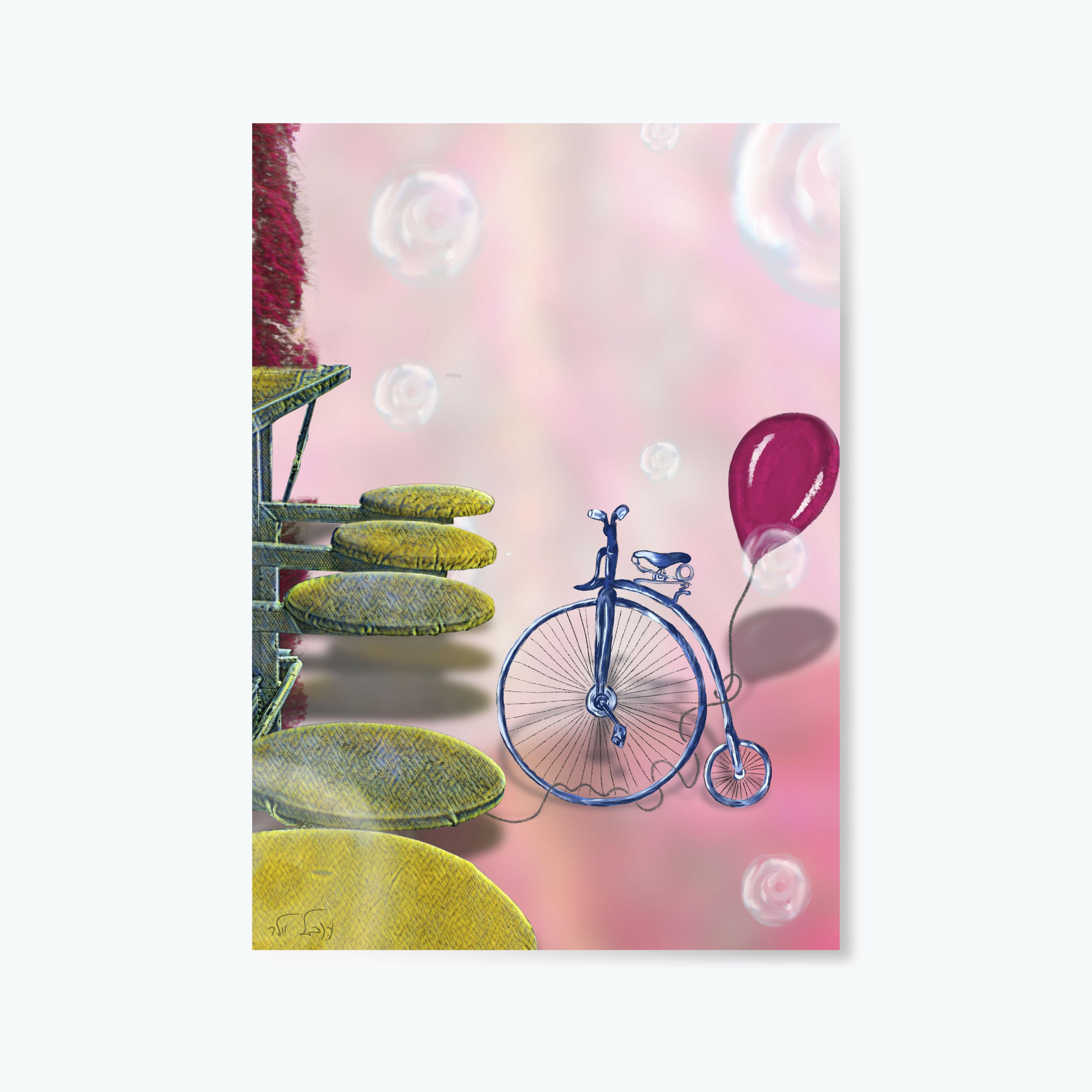 תמונת קולאז׳ ורדרדה, יום בחוץ עם אופניים.